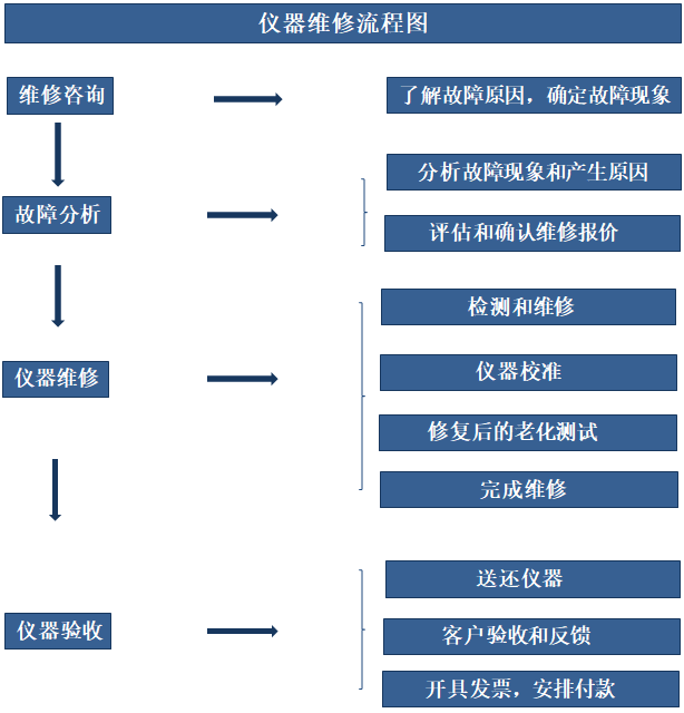 2.维修质量:整个维修过程我们采用芯片级维修策略,目的是降低维修成本从而给客户更优惠的价格。始终使用原装配件是我们不变的准则,修复后用原厂校准软件调整数据,保证维修的精度,通过第三方检测机构的计量。修复过的仪器同等故障免费保修3个月。